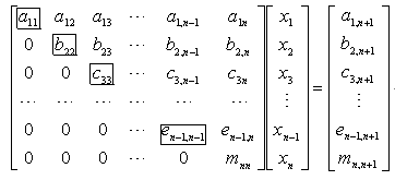 这样做完n次之后,消元过程结束.原来系数矩阵已经化成上三角形矩阵(这时未知数的次序已做了若干次调换).