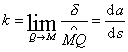 [曲率、曲率半径、曲率圆(或密切圆)与曲率中心的定义]  曲线上两点MQ的切线正向的夹角d与弧长之比,Q趋于M时的极限,