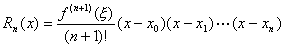 的n+1阶差商。对于由测量给出函数的某些值或分析式子比较复杂的函数用这种余项较为方便。