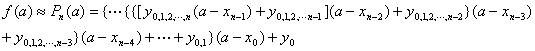 按差商表计算出各阶差商,然后对给定的插值区间内一点a,算出 ,