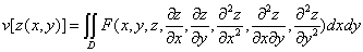 假定函数F是三阶可微的,函数是二阶可微的,函数在区域D的边界C上的值是给定的,欧拉方程为